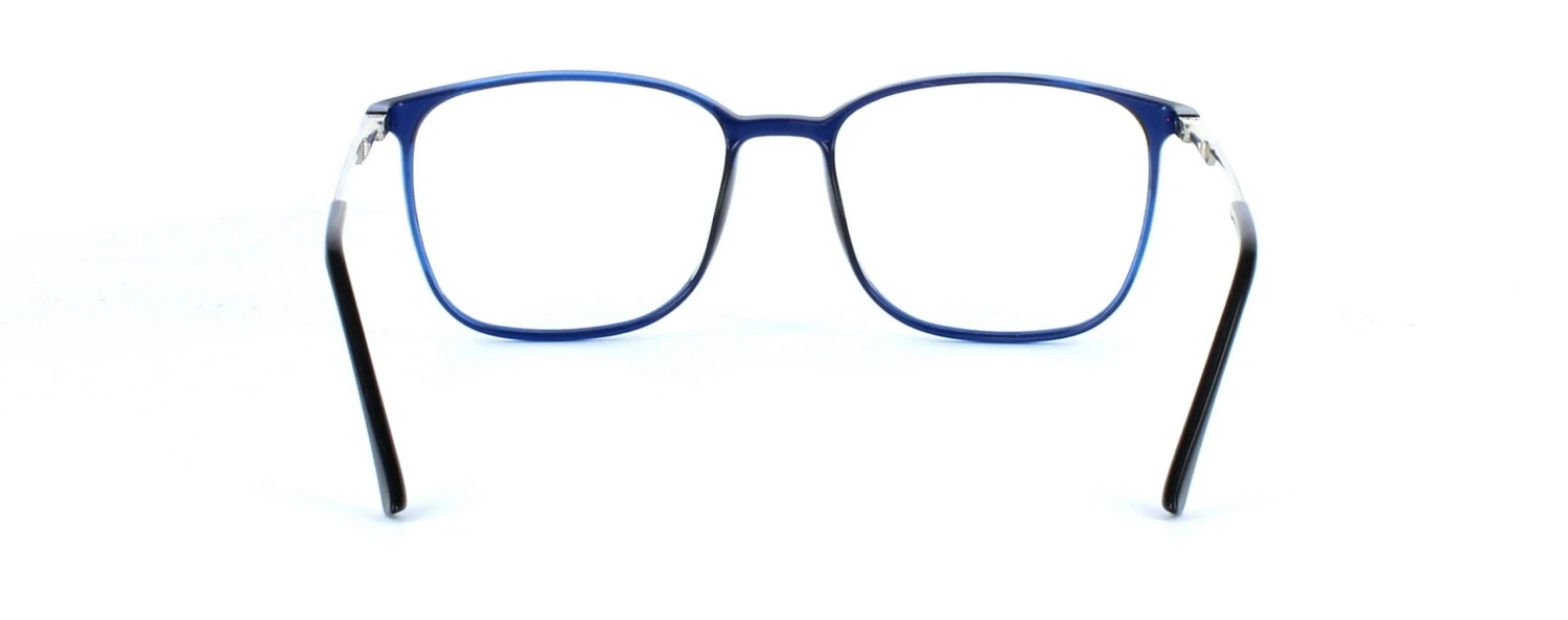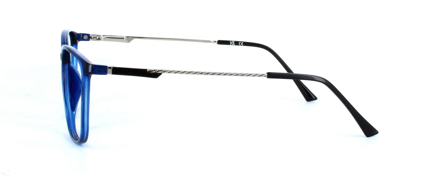 Unisex acetate frame with semi-crystal shiny blue rectangular based lens shape