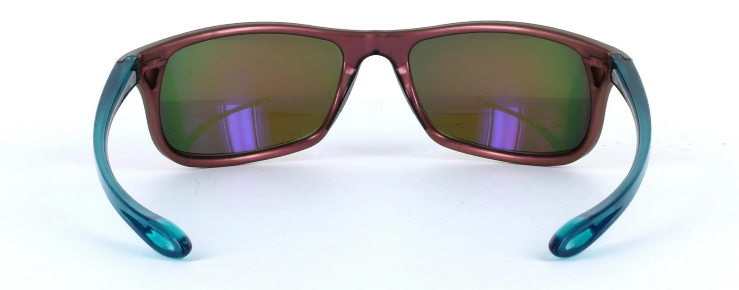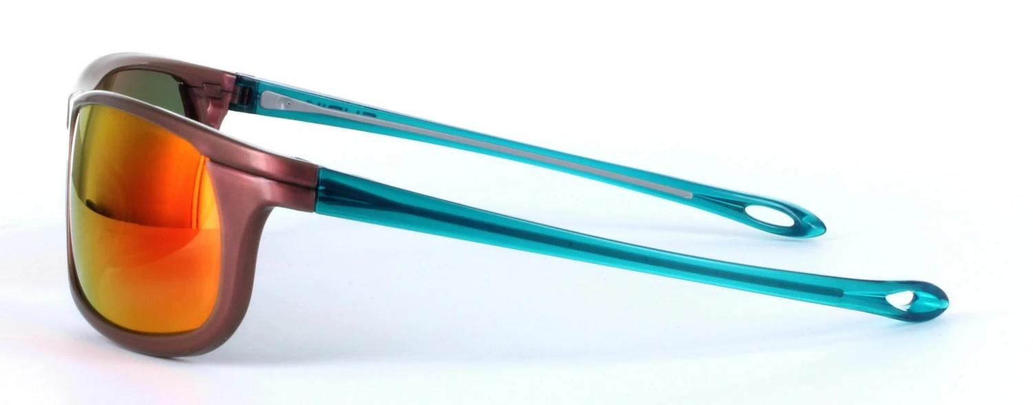 - Affordable quality wrap prescription lens sunglasses here with bronze coloured face and blue arms