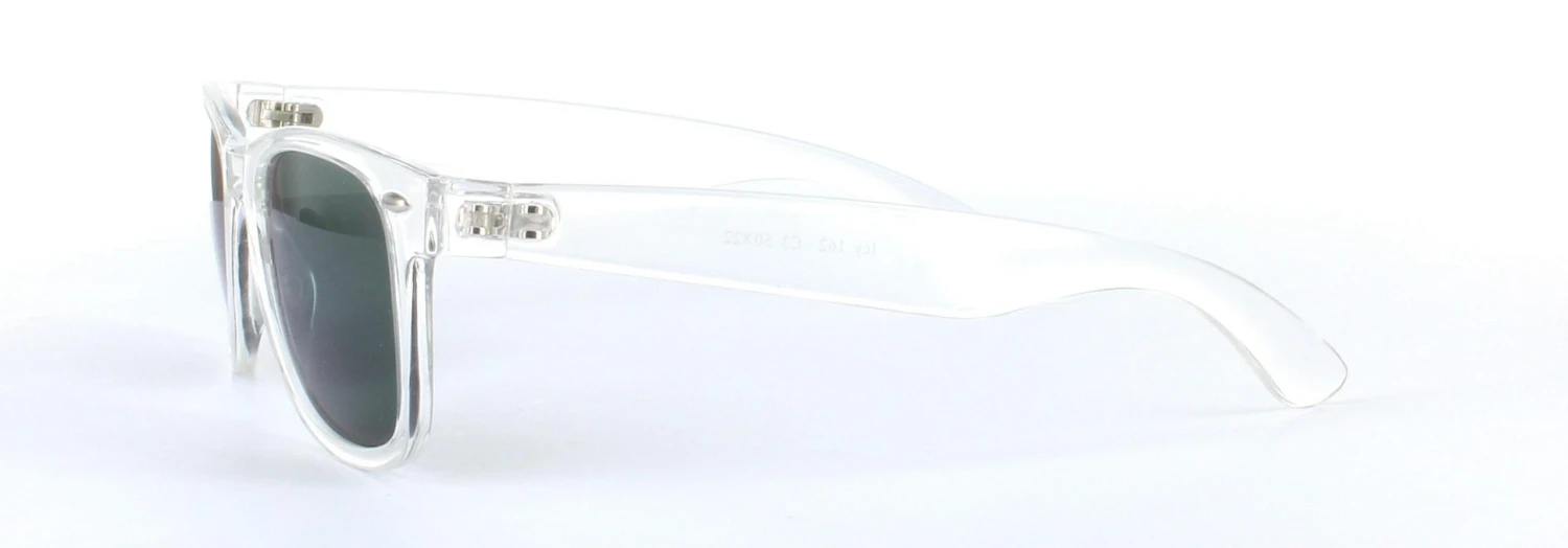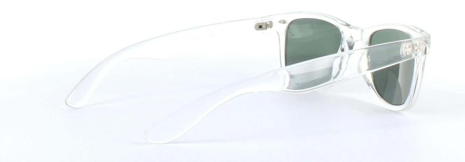 Experience the allure of our prescription England sunglasses frames, showcased here in a stunning clear crystal color with captivating green lenses. This frame effortlessly combines style and sophistication, with a modern yet retro influence evident in its design and shape. It’s a truly eye-catching frame that offers the quality and style of designer sunglasses at an affordable price.