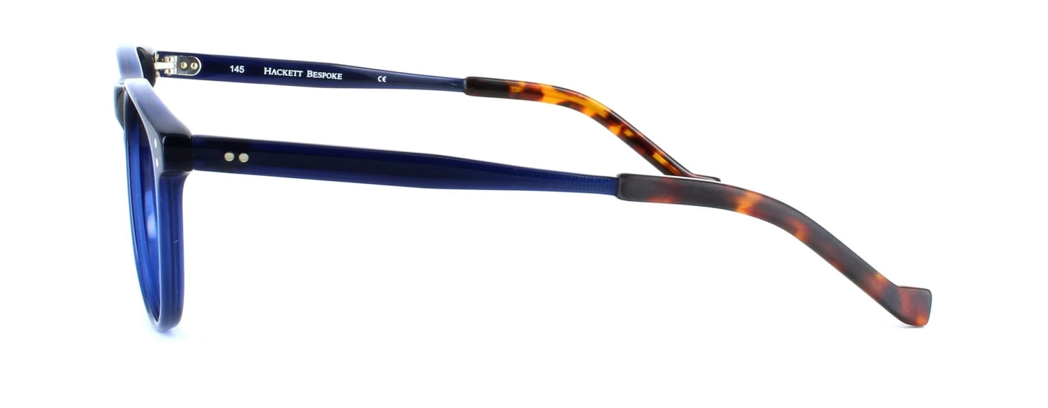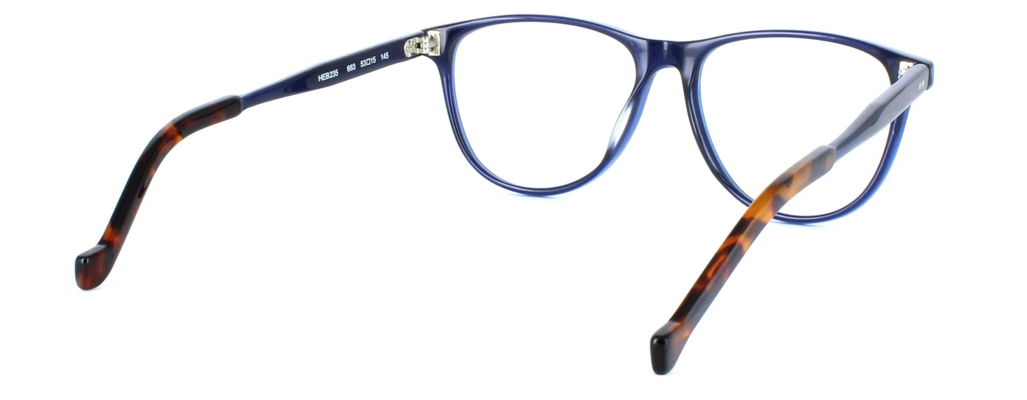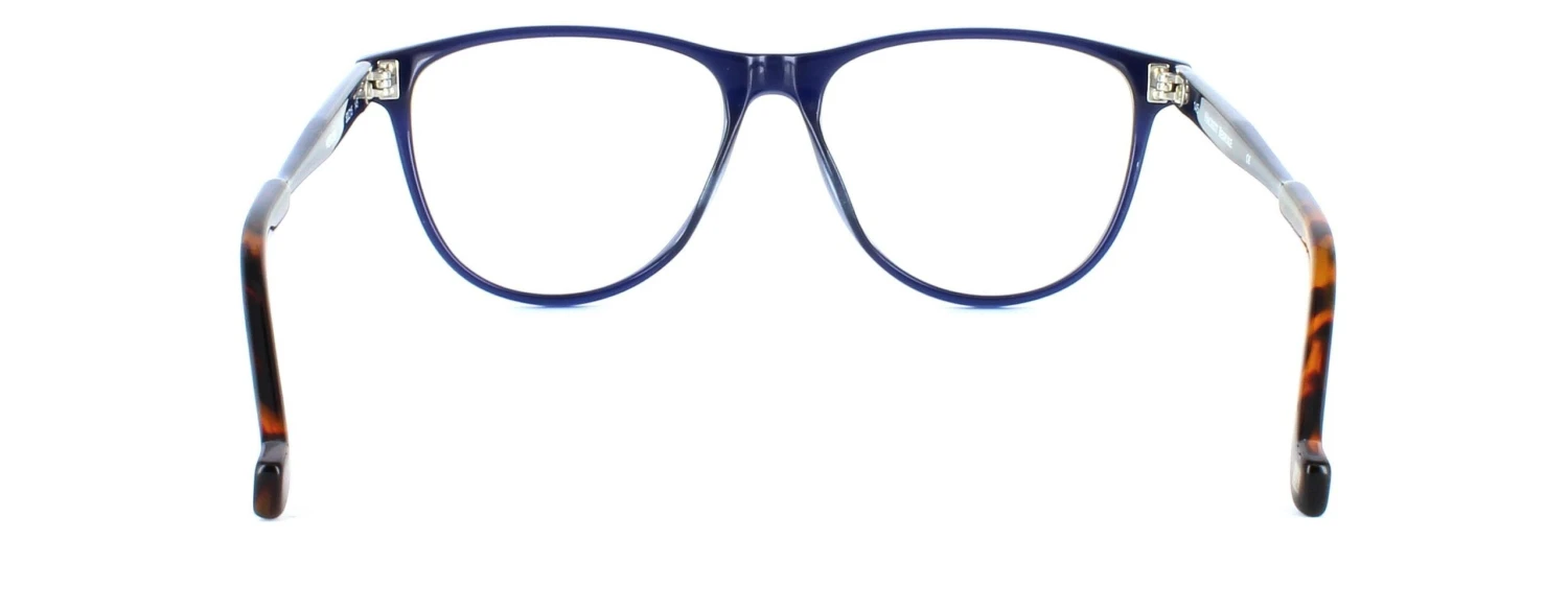 Unisex oval/round shaped full rim acetate. Dark blue with tortoise arms.