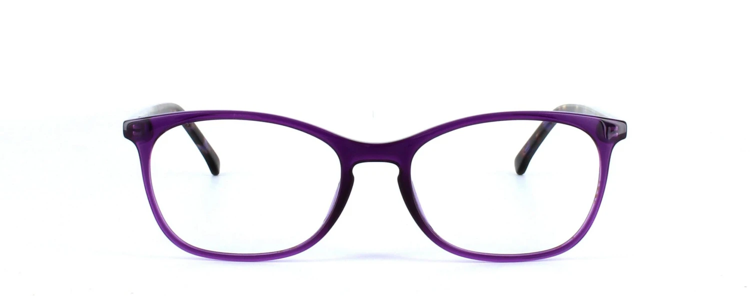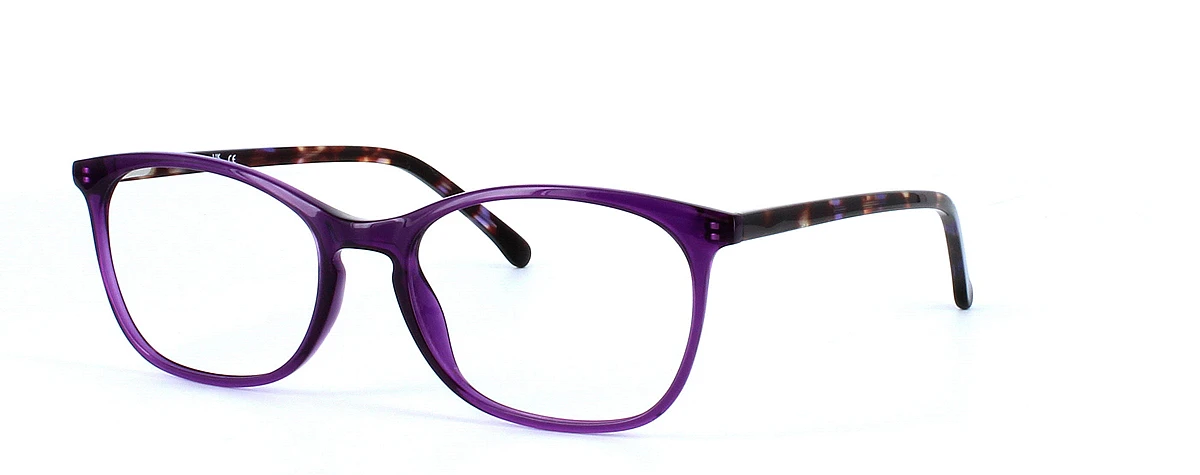Ladies rectangular shaped plastic glasses frame in purple.