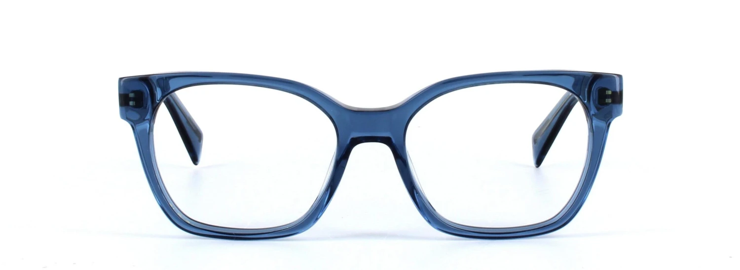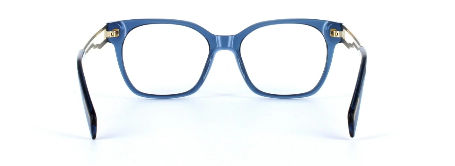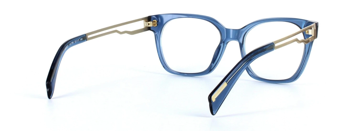 JUST CAVALLI 0801 090 – Ladies square shaped full rim acetate. Crystal blue face with gold metal arms.