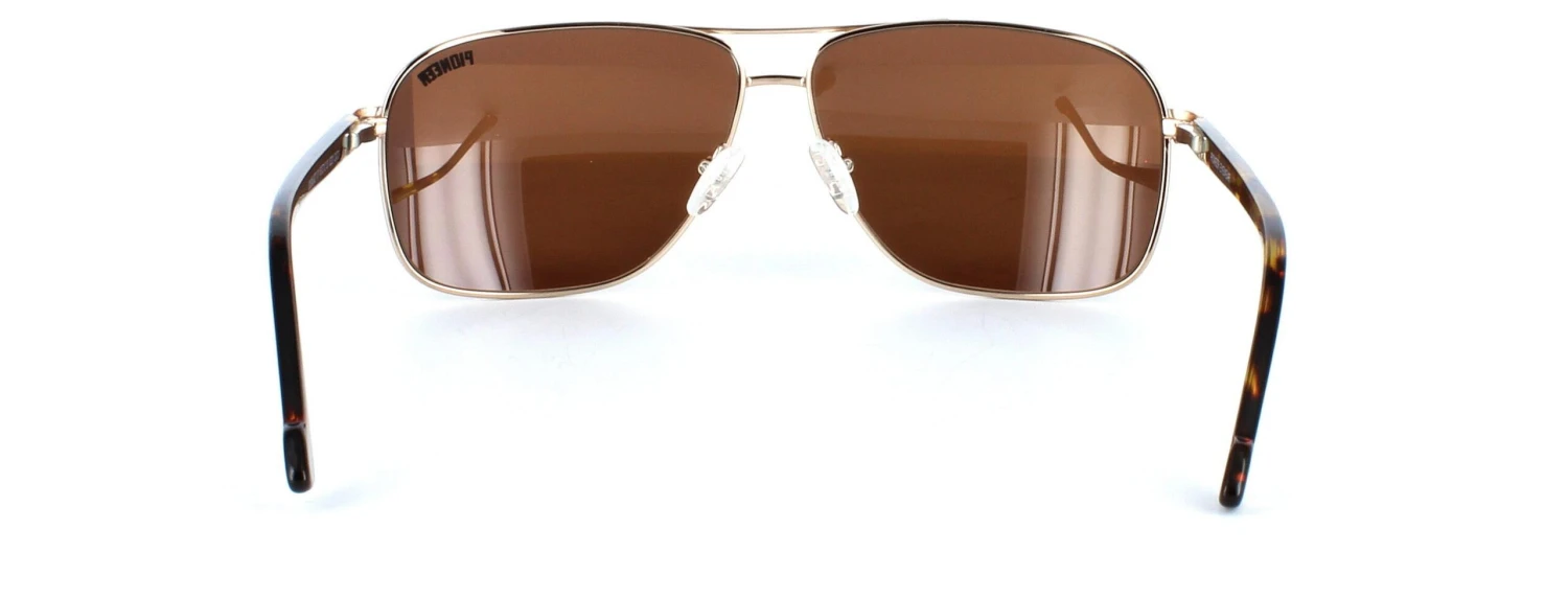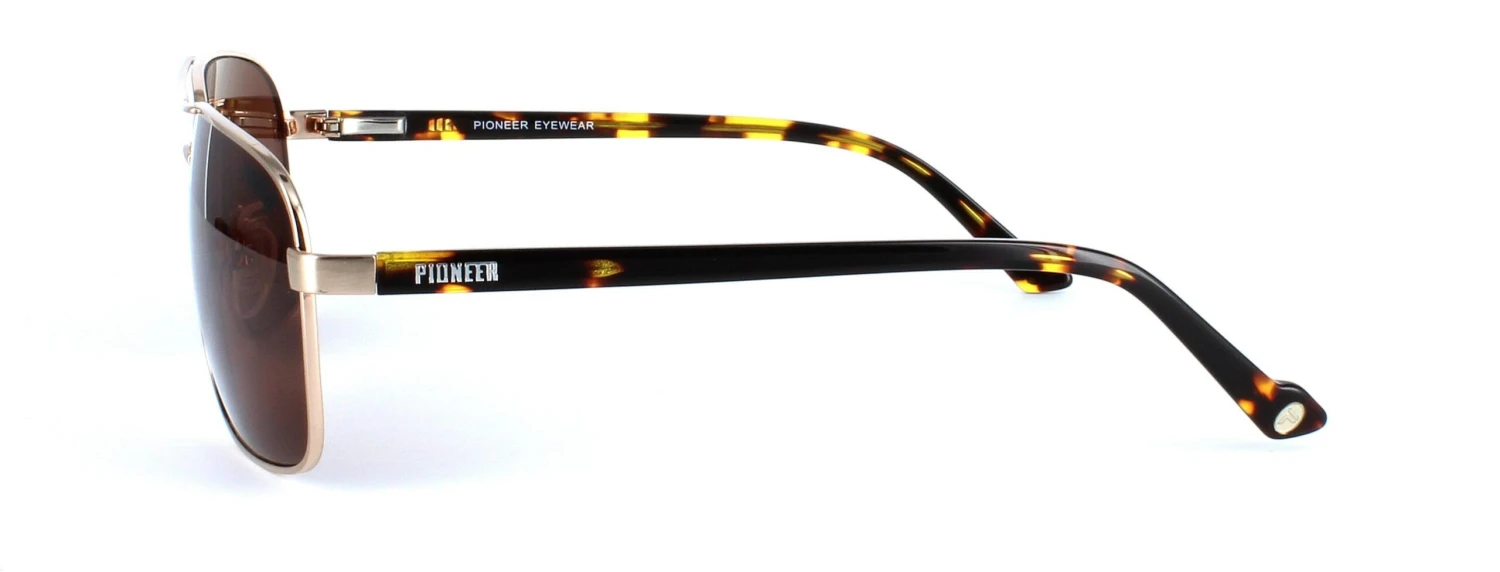 Brand – Pioneer sunglasses here presented in gold with tortoise arms.