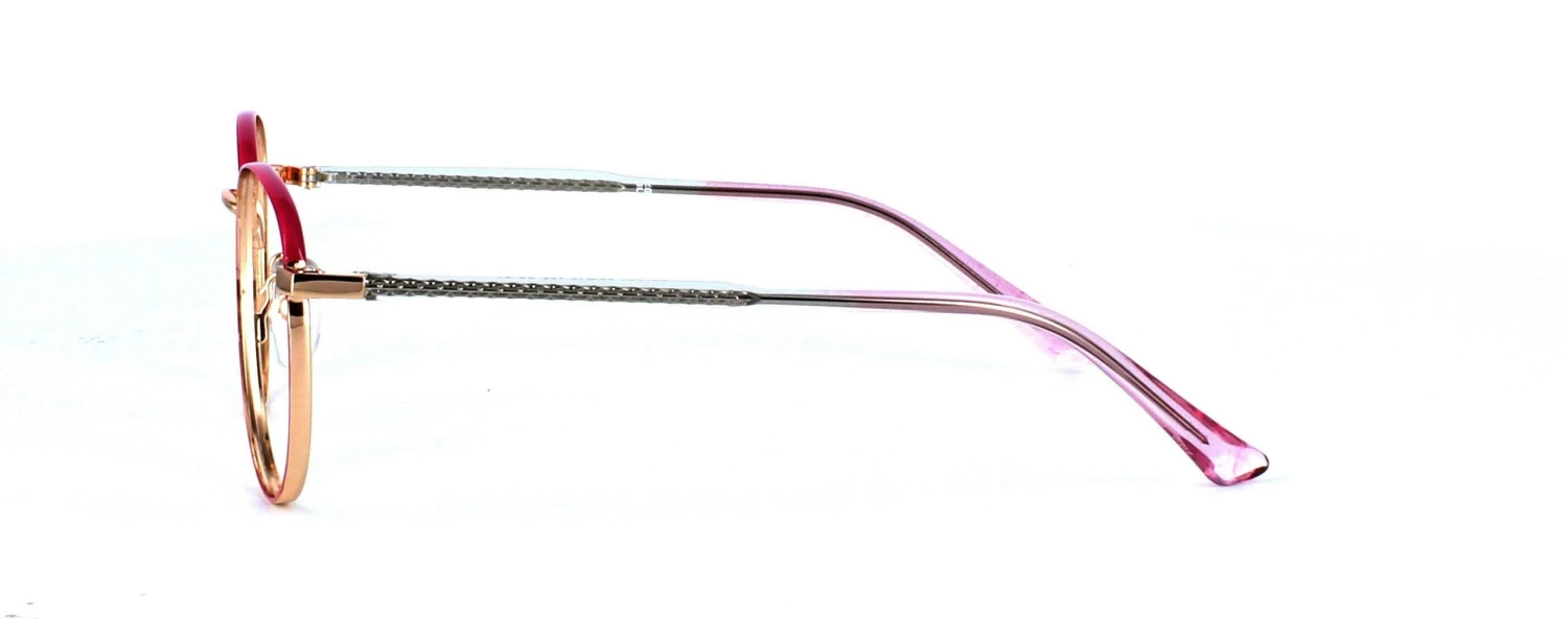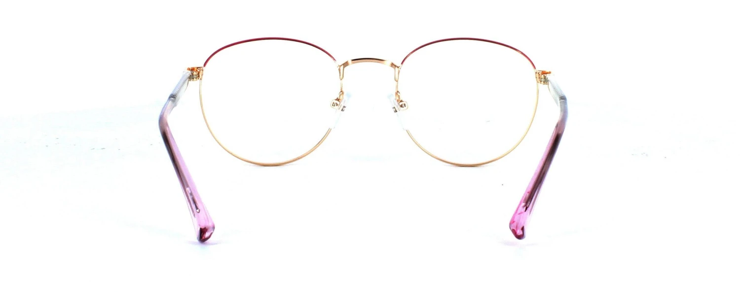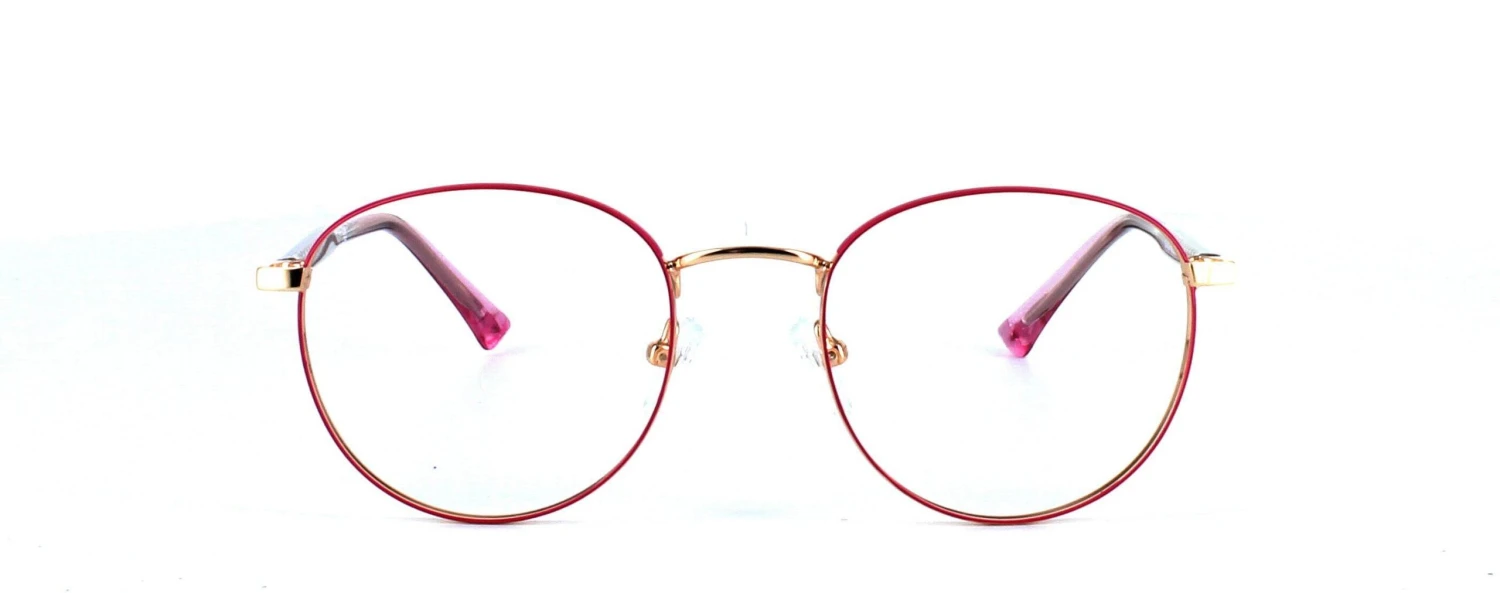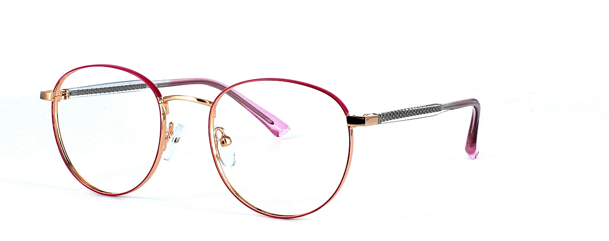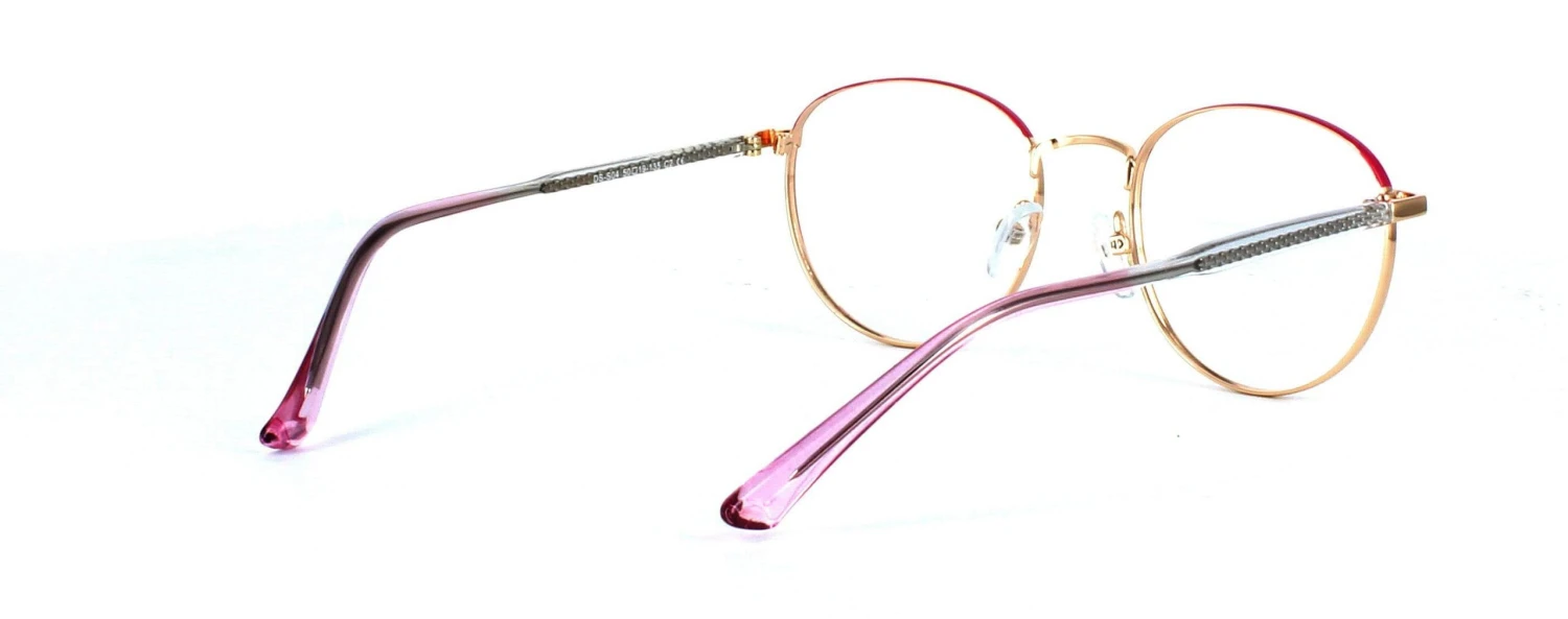 Pink lens surround with gold nose bridge and crystal acetate arms.