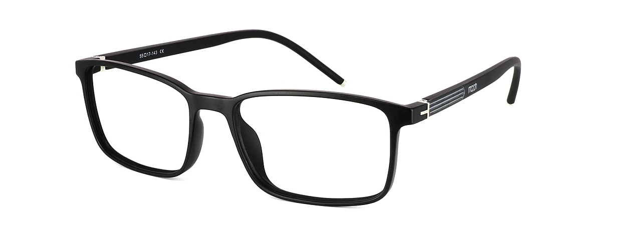 Talaton, here presented in matt black is a unisex, plastic, rectangular shaped frame with sprung hinged arms for added comfort and durability. A really great looking top quality frame.ย